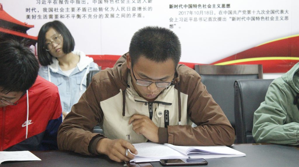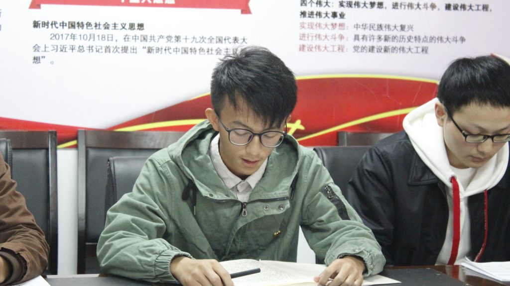 2017信息与计算科学团支部班长彭海波谈到:习近平新时代中国特色社会主义思想中,提出了很多新的论断,为我们以后的学习指明了方向。在以后的学习中,“抓重点、补短板、强弱项”是我的奋斗目标。特别是在中共十九大报告中提到:“中国梦是我们这一代的,更是青年一代的。”我对这句话的印象比较深刻,我们作为新时期的共青团员,感到肩上责任重大,我们一定要努力学习本领,坚定理想信念,以习近平新时代中国特色社会主义思想为指导,努力学习拼搏奋斗,为早日实现“中国梦”贡献自己的一份力量。