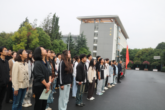 仪式上,英姿飒爽的国旗护卫队迈着整齐划一的步伐,护送着鲜艳的五星红旗缓缓走向旗台,全场师生高唱国歌,五星红旗冉冉升起,点燃了在场师生满腔炽热的爱国之情。
