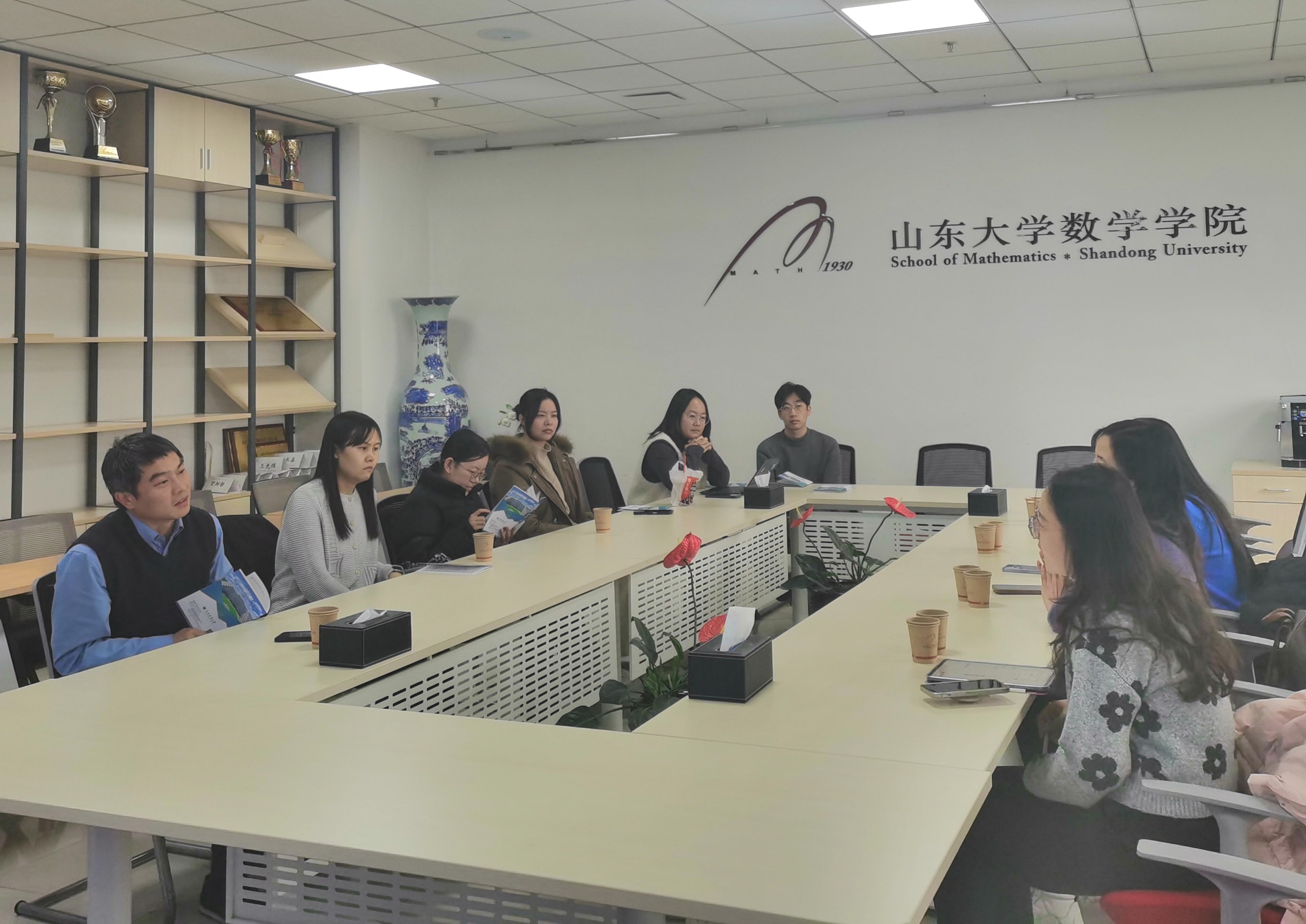 为加强高水平团队队伍建设,深化跨校合作, 12月19日,2026年国际足联世界杯部分教师赴山东大学数学公司开展专题交流活动,山东大学数学公司副书记张艳强、部分教师及博士参加会议
